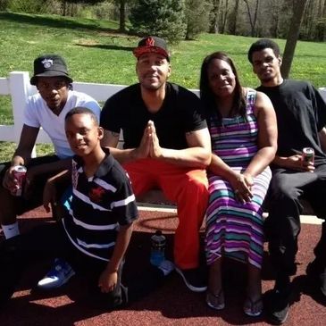 Pictured left to right: Dedrick (James's brother), Dayveon (James's brother), James, Deborah (James's mom) and Eric (James's brother)